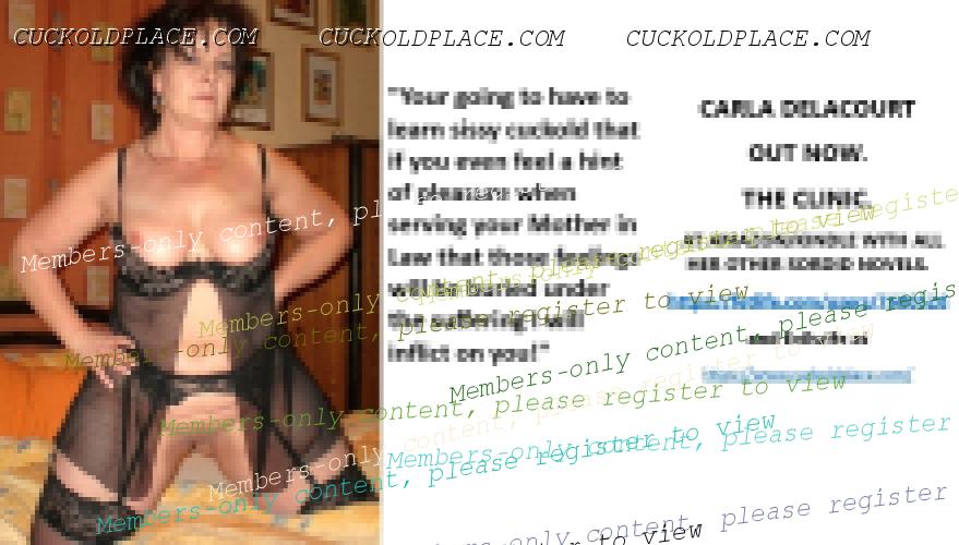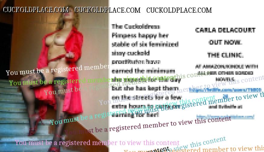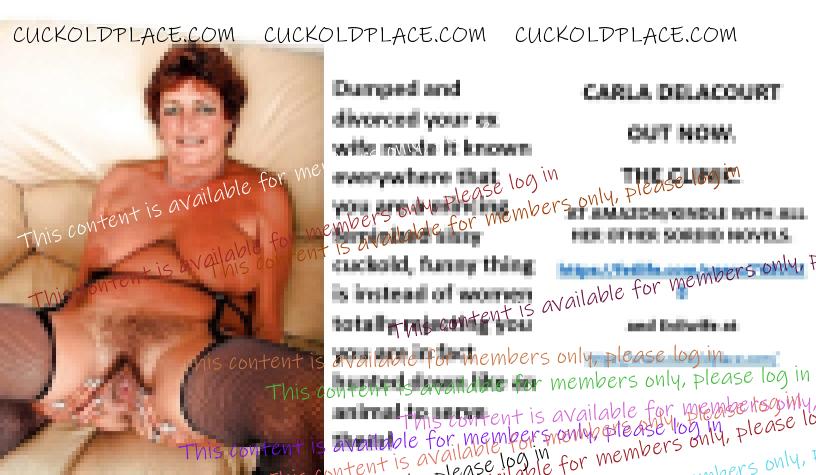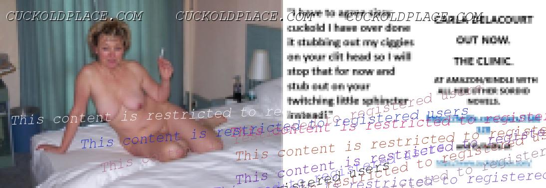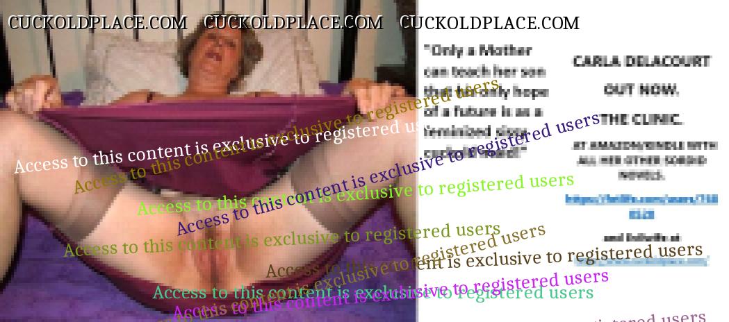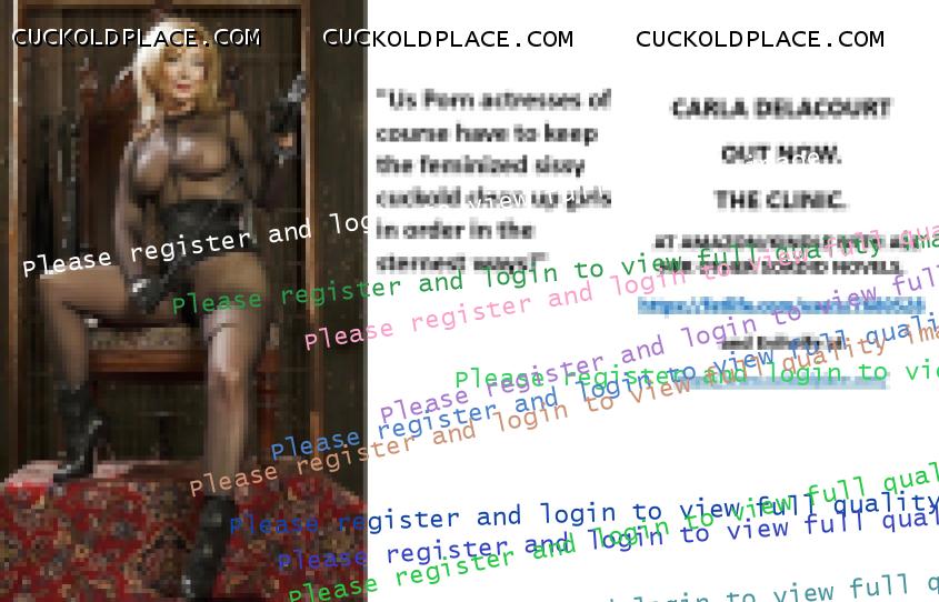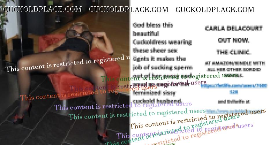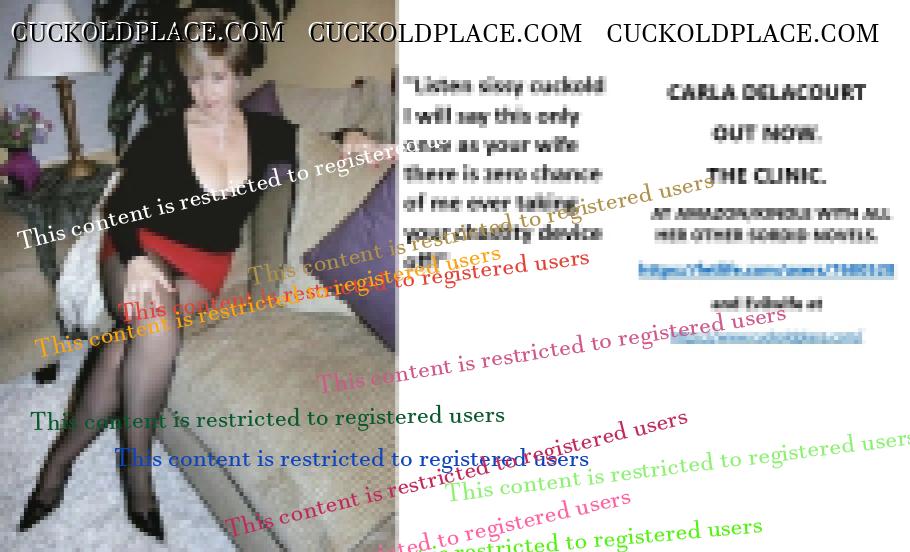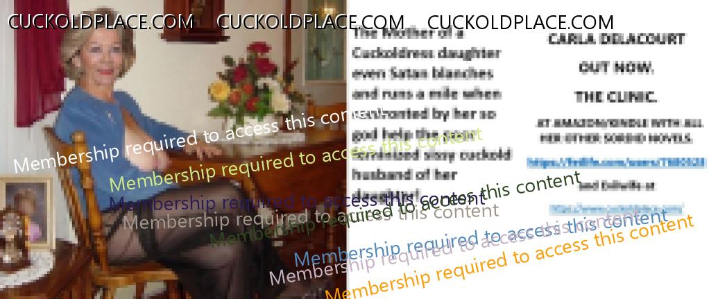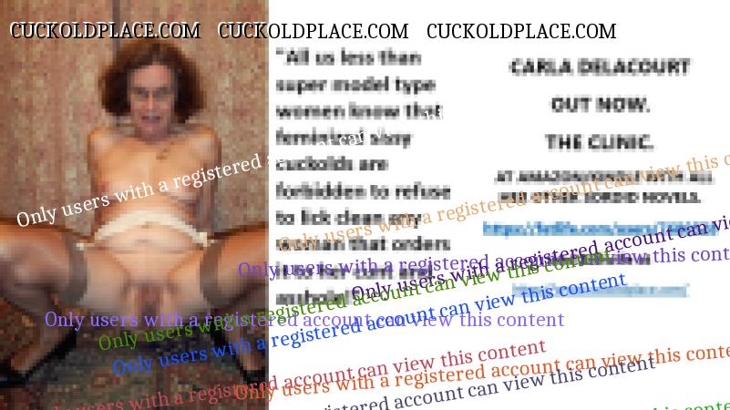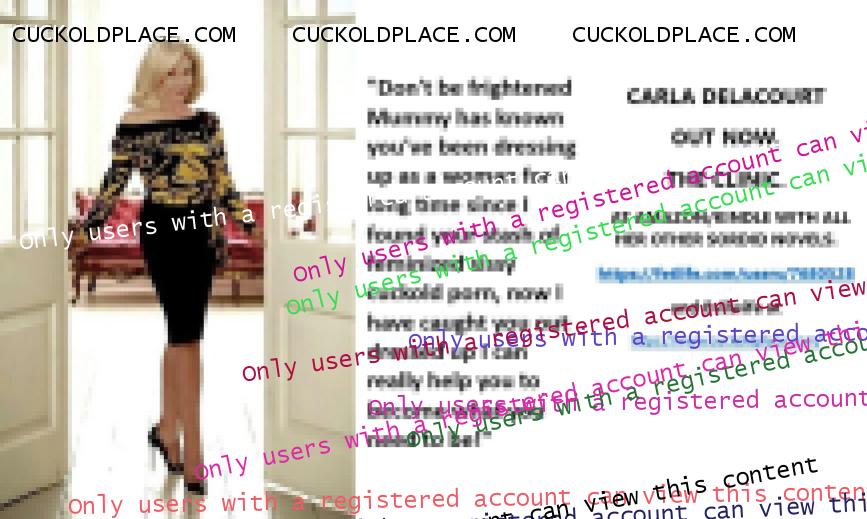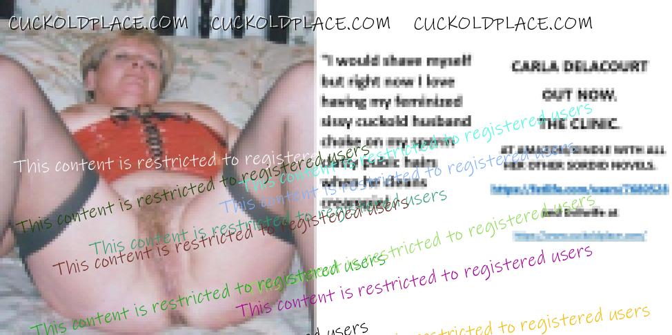 CARLA DELACOURT OUT NOW. THE CLINIC. AT AMAZON/KINDLE WITH ALL HER OTHER SORDID NOVELS. The hyperlink is visible to registered members only!and Evilwife at https://www.cuckoldplace.com/SISSY CUCKOLD HISTORY 891. You know you're a full blown feminized sissy cuckold when you discover the feeling of seeing someone you like going off with other men and you get aroused by the *********** even if the said girl does not even know you adore her. From the moment we start our dressing up and it aids our dirty naughty little masturbation sessions we know there is something wrong with us and fiddling with ourselves is a shameful bad naughty thing that we really should not be doing to ourselves but cannot help it. Worse if a woman catches us dressed up and wanking because their reaction to our perverted cavorting's will instil a deep-seated shame and *********** in us that we are not good enough to be allowed to masturbate so by default there is no possible way we should be bothering women for sexual intercourse. Even before we discover what we are most feminized sissy cuckold know that they are small and underdeveloped in the manhood stakes and it becomes in bred into us that we must help and support women have sex with real men our only role to serve the lady and clean her up.