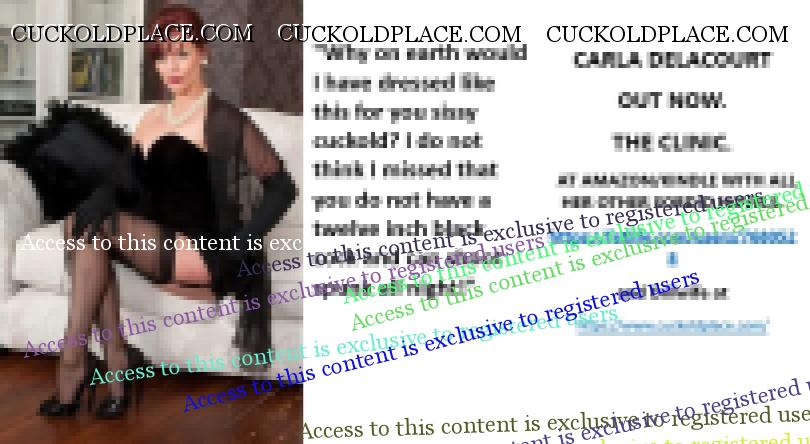 CARLA DELACOURT OUT NOW. THE CLINIC. AT AMAZON/KINDLE WITH ALL HER OTHER SORDID NOVELS. The hyperlink is visible to registered members only!and Evilwife at https://www.cuckoldplace.com/SISSY CUCKOLD HISTORY 879. One of the most difficult things for the new Feminized sissy cuckold is the transition from being a fantasy-based sissy into magazine's, internet porn and sneaky dressing up and living in hope! Up till you find your wife fucking other men of catching you out and deciding that the Cuckoldress status is for her you deal only with your all-powerful sexual urges' kinks and perversions. But when you step over the line into the real world not only do you have to cope with all of the above, but you also now have to deal with raw emotions. Do not forget you've been brought up in a world where what you are is utterly shameful and you have been conditioned to be a man and act as one even if from an early age you knew you were a failure and the women in your life ********** that if a significant woman like you ****** or Aunt caught you out dressing up and caught sight of your shockingly small manhood. Now with your wife cuckolding you, you are going to have to cope with a roller coaster of feelings and emotions that in many cases will utterly crush you as you come to terms with being what you've dreamed of for so long.