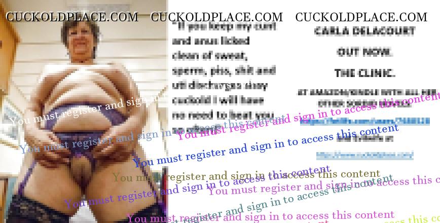 CARLA DELACOURT OUT NOW. THE CLINIC. AT AMAZON/KINDLE WITH ALL HER OTHER SORDID NOVELS. The hyperlink is visible to registered members only!and Evilwife at https://www.cuckoldplace.com/SISSY CUCKOLD HISTORY 886. As a Feminized sissy cuckold do you still feel shame about some of the things you have done in your pathetic little lives. I know I do, from that first time I found that Pink nylon g-string in my ******* laundry basket that the sting of was encrusted with **** and I put it in my mouth and sucked it off to finding a swollen used Tampon in the trash can of one of my ******* friends that I put passed my lips and sucked the ***** out of. I also still shudder about the recall of that dirty old man wanking me off in the gloom of a sex cinema in soho. No matter what it is we all have these shameful secrets that literally have to be dragged out of you by your cuckoldress wife which causes even more shame and ***********.