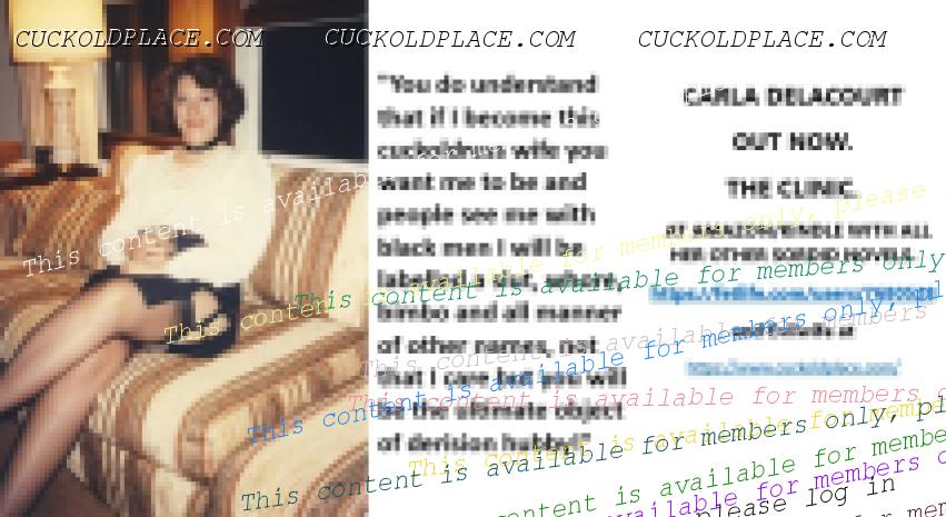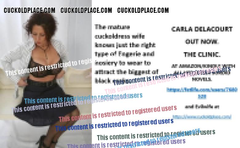 CARLA DELACOURT OUT NOW. THE CLINIC. AT AMAZON/KINDLE WITH ALL HER OTHER SORDID NOVELS. The hyperlink is visible to registered members only!and Evilwife at https://www.cuckoldplace.com/SISSY CUCKOLD HISTORY 878. If you worry as a Feminized sissy cuckold that your wife even though she has decided to give the lifestyle a go had never shown any interest in black men, you need to rest easy. Over the years I have talked to quite a few black guys involved with my wives and other females I have had relationships with and all of them confidently state that they can literally sniff out white married women out for a good time. And more often than not they can see all the signs of a married white Cuckoldress, of course even though they seem to understand what the lady is it's of course hard for them to know what type of husband he will be dealing with. Luckily once the chat up starts and the woman finds that the guy is cool with her Cuckoldress status she will fill in the blanks about her husband and all of the black men I have spoken to tell of the relish to be with a woman who has feminized her hubby and has him locked in chastity.