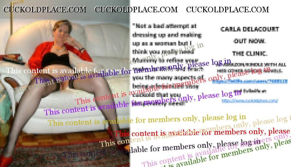 CARLA DELACOURT OUT NOW. THE CLINIC. AT AMAZON/KINDLE WITH ALL HER OTHER SORDID NOVELS. The hyperlink is visible to registered members only!and Evilwife at https://www.cuckoldplace.com/SISSY CUCKOLD HISTORY 896. It's a very scary thing when you become an actual Feminized sissy cuckold because of the total and absolute handing over of all power and control of your life to another person. You can get off on the fantasy to your hearts content but to actually give up all your rights as a human to another is daunting to say the least and thankfully a loving Cuckoldress will understand this and will make the transition for you as painless as possible. This is a knack that women have the ability to lure and seduce, her femininity and sex will gain her everything for you by teasing and denial with ****** violence only being the last resort to get you to comply. In many instances the Cuckoldress will be adept enough to talk to the new feminized sissy cuckold in such a way that it will under its own recognizance come to believe that what is being proposed to him is actually logical an in many ways something that he wants and needs. Put simply as many Cuckoldress wives will tell you it's all about breaking the new feminized sissy cuckold down to its lowest form before building it up again in the image she wants and demands of a maid and slave serving her with no thought to itself.