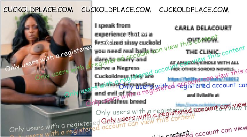 CARLA DELACOURT OUT NOW. THE CLINIC. AT AMAZON/KINDLE WITH ALL HER OTHER SORDID NOVELS. The hyperlink is visible to registered members only!and Evilwife at https://www.cuckoldplace.com/SISSY CUCKOLD HISTORY 899. One thing that I have learned over the years as a Feminized sissy cuckold is that once a wife gets into being a Cuckoldress and believe me it does not take long once they have taken the first step and they cast of societies moral bondage they can become the lady of their darkest dreams. You will find your Cuckoldress wife or partner engaging in sexual activities that even for you a perverted feminize sissy cuckold will find shocking and the two reasons for this is firstly she is getting all her sexual dreams and desires utterly fulfilled and secondly her arousal becomes so much more seeing you're suffering and torment. Your wife will become addicted to rubbing the face of the one that loves them into her most dirty sexual depravities. Black men can really count themselves lucky that history has led them on the path of history which has made them a core part of white women sexually taboo desires so when your wife does become a Cuckoldress one of the first things she will do it start taking a bite out of that particular apple. For those feminized sissy cuckolds just starting out on their life course who crave seeing interracial sex and consume masses of that type of porn you will never be able to imagine what it's actually like when the one you love and adore starts fucking black men. It is a life altering event that once done can never be stopped as your wife will become utterly addicted in every sense to black cock and will flaunt this right up close and personal in front of you. I as a lifelong feminized sissy cuckold who tries to set down thoughts and feelings about ourselves fail in the words to describe what you feel when a gaggle of black men entertain your nearest and dearest and see her go totally wild and depraved fucking the **** out of the men because that's what the Cuckoldress wife does with all her sexuality and holes loving every inch the men can give her right in front of her loving feminize husband. And for us feminized sissy cuckold the icing on the cake so to speak is not only getting to watch such electric pornographic sex but also that the black man likes nothing better than doing white wives in front of their pathetic small dicked feminized and chastity locked husbands letting their power rise to the surface as they screw what they were once denied to the pain of the ultimate punishment making sure your sexy cuckoldress wife gets ever pint of spunk their big black balls can dump I her more than willing holes!