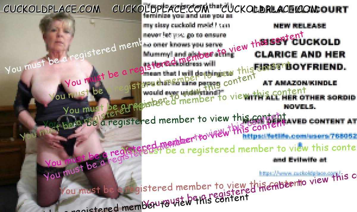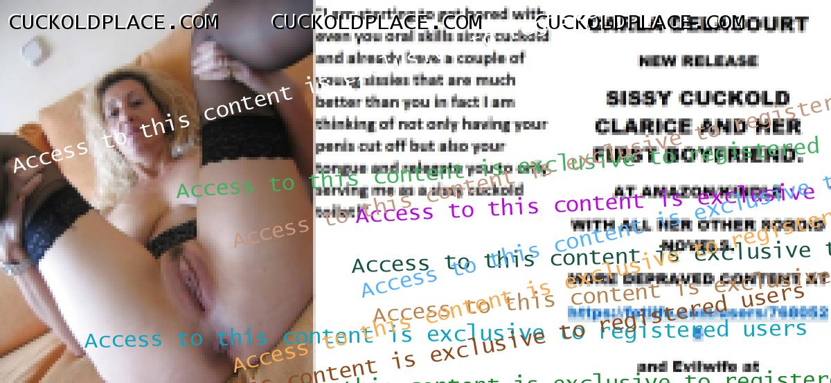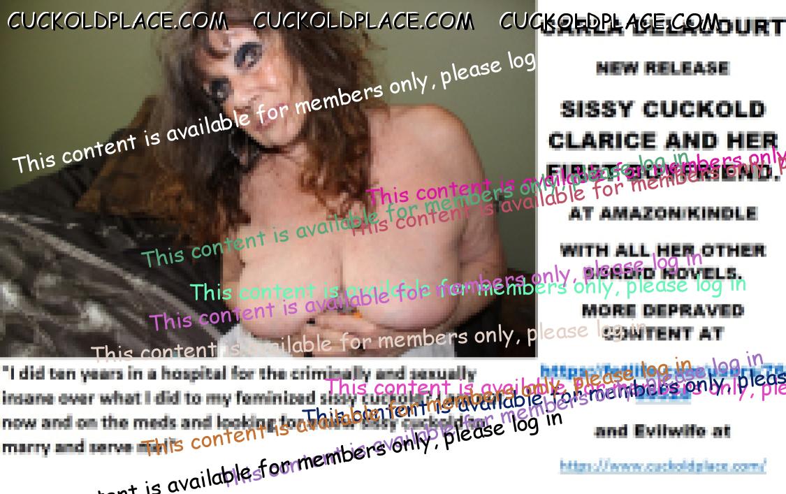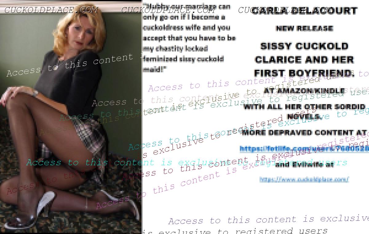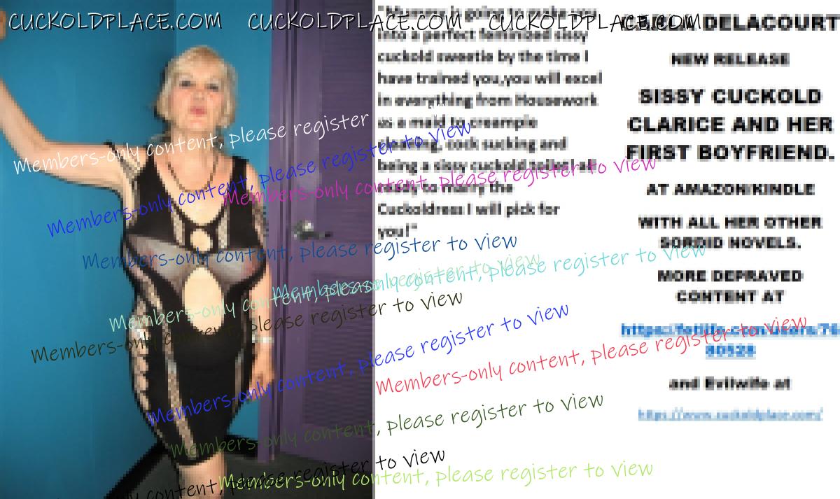 CARLA DELACOURT NEW RELEASE SISSY CUCKOLD CLARICE AND HER FIRST BOYFRIEND. AT AMAZON/KINDLE WITH ALL HER OTHER SORDID NOVELS. MORE DEPRAVED CONTENT AT The hyperlink is visible to registered members only!and Evilwife at https://www.cuckoldplace.com/SISSY CUCKOLD HISTORY 486. Life for a budding feminized sissy cuckold is one of constant upheaval and uncertainty as it develops finding ever new aspects of it's real self that have to be accommodated as the sissy develops. So when the budding sissy cuckold gets to a serious relationship and even marriage it thinks it knows it all? well think again sissy as becoming a feminized sissy cuckold to a woman who is starting on her road of becoming a Cuckoldress wife opens up a whole world that sissy cuckold has never even contemplated. One of the hardest parts for the budding sissy cuckold is that step over from the basic fantasy life he has led up to marriage to being wed and becoming a real feminized sissy cuckold and as the laws for us state we have now in union no human rights what so ever and the power exchange goes completely over to the Cuckoldress wife. This act of letting another person totally dominate and control you is in fact the breaking point for many relationships even before they walk up the aisle! but for a successful Cuckoldress led marriage to work it has to be over come and ********** must occur and unconditional obedience love and adoration will lead to a marriage that is in many ways much more loving adoring and faithful than the vanilla counterpart. Sounds strange that a Cuckoldress and Sissy Cuckold being faithful to each other? well think about it the feminized sissy cuckold husband certainly is and will be for good and The Cuckoldress wife will be faithful in her role as a Cuckoldress fucking as many men as she wants and executing her role as the dominant partner in the marriage. As a Feminized Sissy Cuckold happy marriage happens when you trust your Cuckoldress completely suffering even the worst things she does to you happy in the knowledge that she has decided what's good for you and how much suffering you have to do to make her happy!