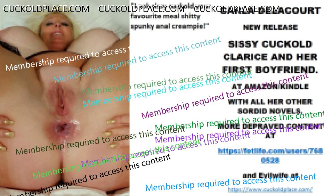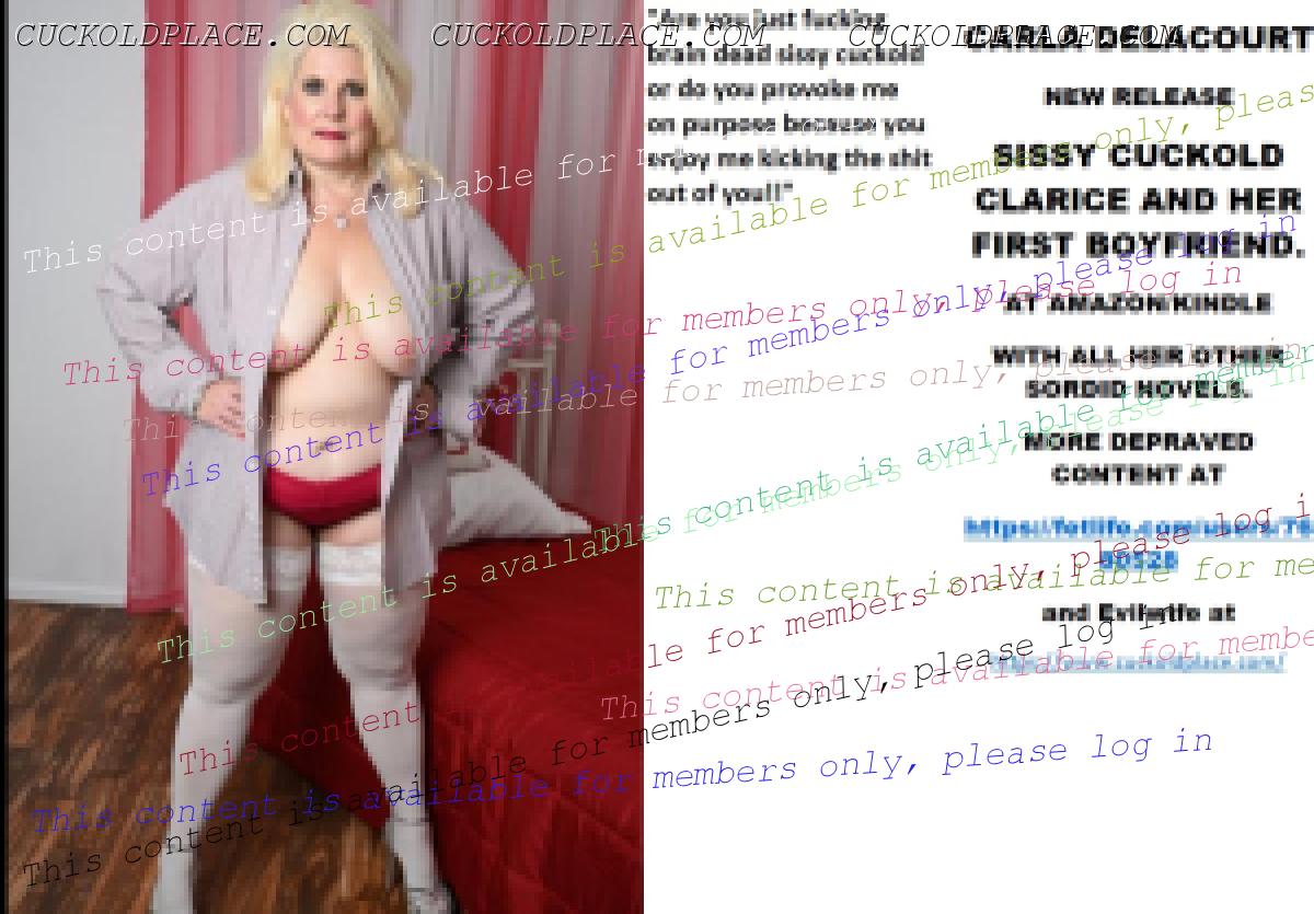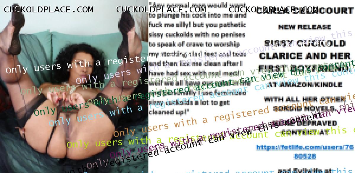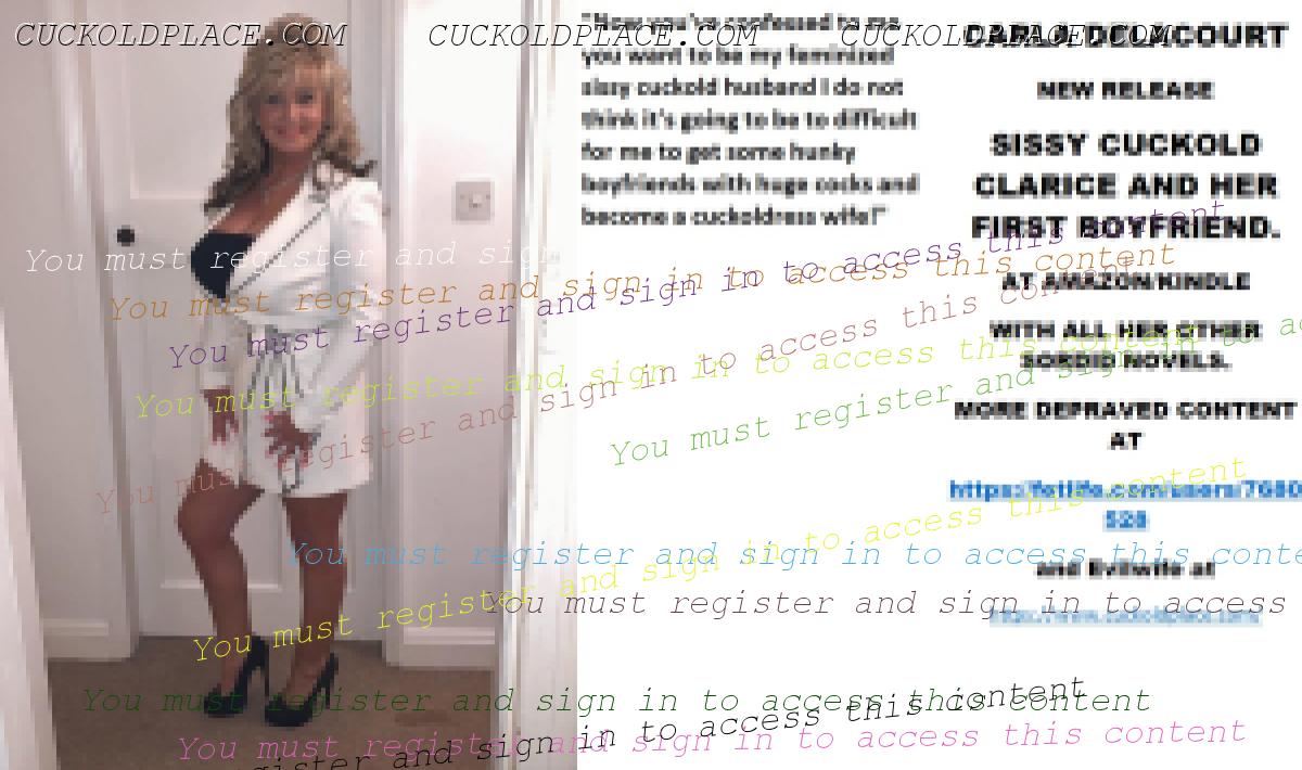 CARLA DELACOURT NEW RELEASE SISSY CUCKOLD CLARICE AND HER FIRST BOYFRIEND. AT AMAZON/KINDLE WITH ALL HER OTHER SORDID NOVELS. MORE DEPRAVED CONTENT AT The hyperlink is visible to registered members only!and Evilwife at https://www.cuckoldplace.com/SISSY CUCKOLD HISTORY 486. Life for a budding feminized sissy cuckold is one of constant upheaval and uncertainty as it develops finding ever new aspects of it's real self that have to be accommodated as the sissy develops. So when the budding sissy cuckold gets to a serious relationship and even marriage it thinks it knows it all? well think again sissy as becoming a feminized sissy cuckold to a woman who is starting on her road of becoming a Cuckoldress wife opens up a whole world that sissy cuckold has never even contemplated. One of the hardest parts for the budding sissy cuckold is that step over from the basic fantasy life he has led up to marriage to being wed and becoming a real feminized sissy cuckold and as the laws for us state we have now in union no human rights what so ever and the power exchange goes completely over to the Cuckoldress wife. This act of letting another person totally dominate and control you is in fact the breaking point for many relationships even before they walk up the aisle! but for a successful Cuckoldress led marriage to work it has to be over come and ********** must occur and unconditional obedience love and adoration will lead to a marriage that is in many ways much more loving adoring and faithful than the vanilla counterpart. Sounds strange that a Cuckoldress and Sissy Cuckold being faithful to each other? well think about it the feminized sissy cuckold husband certainly is and will be for good and The Cuckoldress wife will be faithful in her role as a Cuckoldress fucking as many men as she wants and executing her role as the dominant partner in the marriage. As a Feminized Sissy Cuckold happy marriage happens when you trust your Cuckoldress completely suffering even the worst things she does to you happy in the knowledge that she has decided what's good for you and how much suffering you have to do to make her happy!
