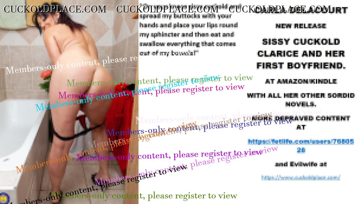 CARLA DELACOURT NEW RELEASE SISSY CUCKOLD CLARICE AND HER FIRST BOYFRIEND. AT AMAZON/KINDLE WITH ALL HER OTHER SORDID NOVELS. MORE DEPRAVED CONTENT AT The hyperlink is visible to registered members only!and Evilwife at https://www.cuckoldplace.com/SISSY CUCKOLD HISTORY 508. I personally cannot recall a time when I ever had what some would describe as normal sexual thoughts? It seems to me that I was born with a deviant brain, emotions and urges and that the only thing they ever did was get more complex and perverted as I grew and matured. Take for example my need these days, what sort of failure am I when if I go down on any woman and her pussy is sweet smelling, clean and perfumed I am to say the least disappointed and even repelled to a certain extent. Maybe it's conditioning from the women who initiated my sexual education that were shall we say much less than unfucked clean and hygienic and found fun in making me go down on them in the appalling states they were in at the time. Personally I think it started way before then when I was a pathetic hosiery wearer and pantie sniffer and licker discovering panties that her soiled with vaginal discharge, mentstrual ************** slime and faecal matter. All these tastes and aroma's from the filthy gussets excited my taste buds and orofactory senses to a degree I cannot do justice to by words alone. And really us Feminized Sissy Cuckolds must never be allowed anywhere near pussies, sphincters and cocks unless they are dirty slick with sexual excretions and waste.