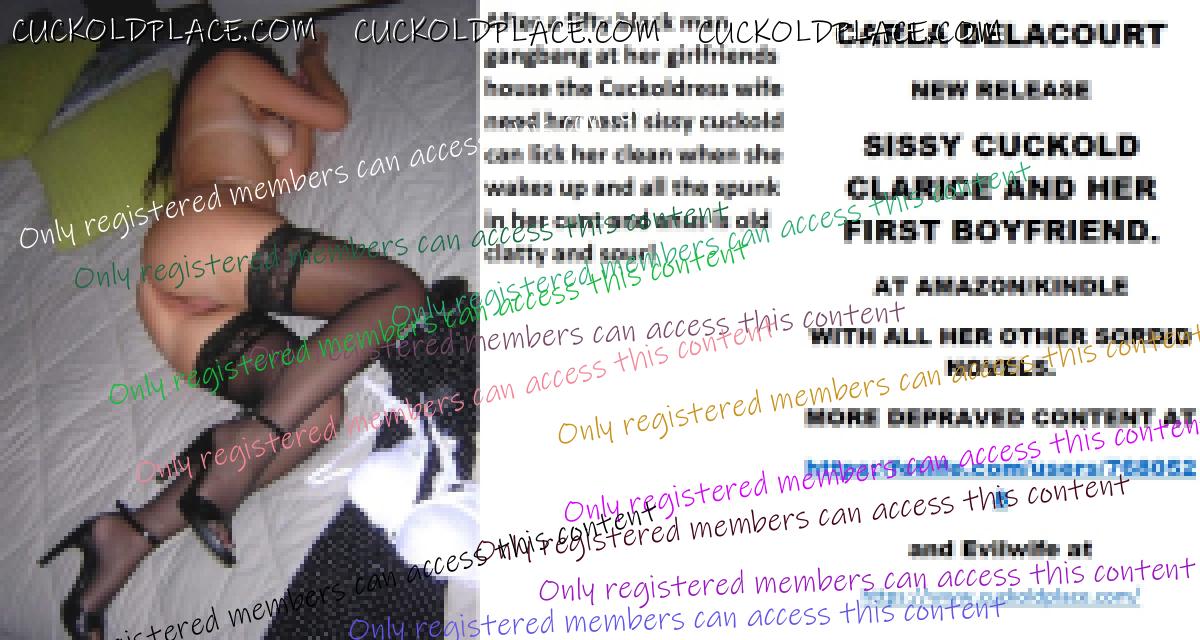 CARLA DELACOURT NEW RELEASE SISSY CUCKOLD CLARICE AND HER FIRST BOYFRIEND. AT AMAZON/KINDLE WITH ALL HER OTHER SORDID NOVELS. MORE DEPRAVED CONTENT AT The hyperlink is visible to registered members only!and Evilwife at https://www.cuckoldplace.com/SISSY CUCKOLD HISTORY 494. With the avalanche of advertising these days where a black guy is with a white woman and the white male is nowhere to be seen I wonder how long it will be till we see a feminized white guy in one of the adverts. Already the white guy or husband is portrayed as a worthless idiot so the step to showing him feminized is not that far away and already by the very nature of the adverts the subliminal message is being put forward that white wives need black men! It's already patiently obvious to us feminized sissy cuckolds and I suspect most women understand the message! As time goes on and evolves I think personally the Cuckoldress led marriage will become an accepted and open feature of our society and what is mostly kept behind closed doors will be open for all to see. Talking as I do to many people on all sides of our lifestyle it's already apparent that the black male accepts fully the Cuckoldress wife and the feminized sissy cuckold and what place he plays in the lifestyle knowing he is sexually superior in every way to the sissy cuckold. And overall women these days are less and less aghast at sissies such as us and even if they are not gung ho for the lifestyle they want to know all about it down to the nitty gritty detail as they already know in themselves that their husbands and boyfriends lack that special man thing that a real man has that is more than just a massive cock! Another spin off from the dawning of acceptance of the Cuckoldress lifestyle and the fact that so many white guys are now unable to get a female girlfriend let alone a wife is that through sheer frustration and denial a lot of white guys and some black guys it has to be said are turning to the feminized sissy cuckold for their avenue to a girlfriend and sex! This state of affairs is fully encouraged by the cuckoldress wife specially if her feminized husband has a fear of queer stuff! wives also with a bit of savvy are also inclined to prostitute their sissy cuckolds out to boost the income to support the lifestyle which as we all know can be very expensive!
