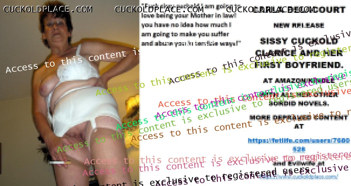 CARLA DELACOURT NEW RELEASE SISSY CUCKOLD CLARICE AND HER FIRST BOYFRIEND. AT AMAZON/KINDLE WITH ALL HER OTHER SORDID NOVELS. MORE DEPRAVED CONTENT AT The hyperlink is visible to registered members only!and Evilwife at https://www.cuckoldplace.com/SISSY CUCKOLD HISTORY 484. I have always been drawn to the older woman as a feminized sissy cuckold and even when I tried to be a man all my dates with younger women or girls my own age were disasters on a massive scale apart from one that I still think of dearly? But it was always the older woman that I felt so submissive around and craved to serve, I suppose this was instilled in me from the incidents involving my ****** as a budding transvestite and future sissy cuckold that thankfully ****** understood in me as did her girlfriends Pam, Fran and Wendy who knew just how to use a little crossdresser like me so forming life changing needs in me. The older woman of course has been there and seen it all before so is relaxed and enjoys playing with various aspects of sex from hard fucking with real men to *******, teasing and tormenting us feminized sissy cuckolds. For me the allure of older women has just increased from the early days and I have joyfully served women in their 60s 70s and 80s the oldest lady so far is Rose at 86 who I do French maid work for and far from slowing down in her dotage seems to have found her second wind of utter sexual depravity that she likes to exert over me as I am so submissive and pliable and the more she got to know me the more she realized that she could do anything she wants to me! Yes Rose looks very old but these days she makes up and dresses very racy hosiery a must and she loves the expensive fully fashioned stockings I buy for her as well as the three inch heeled marabou slippers which go so well with the foundation wear and lingerie she wears. Since Naughty Rose has taken me under her wing she has even met and see's a young kinky lad for sex which really surprised me as I did not expect her to be intercourse active but in learning and doing things to me she found her interest in fucking coming to the surface so every now and again when I am over doing the housework and seeing to my personal duties with Rose she has me cleaning her creampie pussy which is all wrinkly old with a mass of grey wispy hairs. Rose since meeting me has also become addicted to the things she can get my tongue and mouth to do with her anus and she loves me licking her asshole as she uses a vibrator on her clit till she orgasms, she also soon gained the confidence to make use of my tongue as toilet paper after she defecated and after a year or so doing her bidding I was over cleaning her home when she ordered me to the spare bedroom where she took off her skirt then knickers and knelt on the bed leaving me thinking she wanted her sphincter licking as she likes it but this time Rose ordered me to place my lips round her opening and seconds later her sphincter expanded and into my mouth slid the first of three steaming hot disgusting logs of **** that I swallowed under her urging! We had talked prior to this at the times I had been used as a sissy cuckold toilet and she had listened in interest at the recall of that type of service I had given other women and she had probed me with many questions about it. It was so long after we had talked about human toilets that frankly I had forgotten about it not thinking Rose although interested in hearing about it did not want to participate herself until that day in her spare bedroom. Now I act as Rose's Sissy Cuckold toilet when ever she needs to go which mostly is urine but on the odd occasion if she gets caught short she ****s in my mouth making me eat it then I lick her bottom clean. I have even in deference to her age constructed a special chair for Rose so she can sit comfortably like a queen to do her business in my mouth!