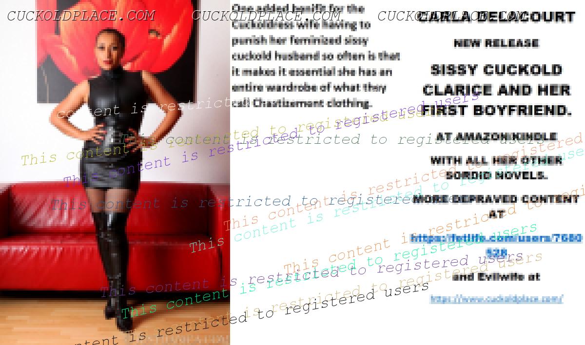 CARLA DELACOURT NEW RELEASE SISSY CUCKOLD CLARICE AND HER FIRST BOYFRIEND. AT AMAZON/KINDLE WITH ALL HER OTHER SORDID NOVELS. MORE DEPRAVED CONTENT AT The hyperlink is visible to registered members only!and Evilwife at https://www.cuckoldplace.com/SISSY CUCKOLD HISTORY 499. Over the years I have chatted with many a Cuckoldress wife and it surprised me that the biggest hurdle they found to jump was not the sexual intercourse with real men or the feminizing of their husbands! No the bit they were unsure of was the punishment of their new feminized sissy cuckold husband? many said that at first they did not know how to gauge the severity of the punishment and if they could actually do it right? The solving of this issue for all of them was communication with other Cuckoldresses either in person at fetish nights or on the net! Once the wife talked about her new state in her marriage to other like minded women and experienced Cuckoldresses the matter is soon resolved and she comes to understand her absolute power as a Cuckoldress wife and that there is no such thing as boundaries and silly safe words. Once the Cuckoldress wife understands this the true nature of the woman can come out and all of them find that in them was a ******** monster of a dominatrix and from then on what ever pain and punishment she decides to inflict on her feminized sissy cuckold husband is done with gusto with a deaf ear to the screams of pain and supplication that ring round the house! (that is until the gags she ordered online along with the whips, canes and tawses arrive!)
