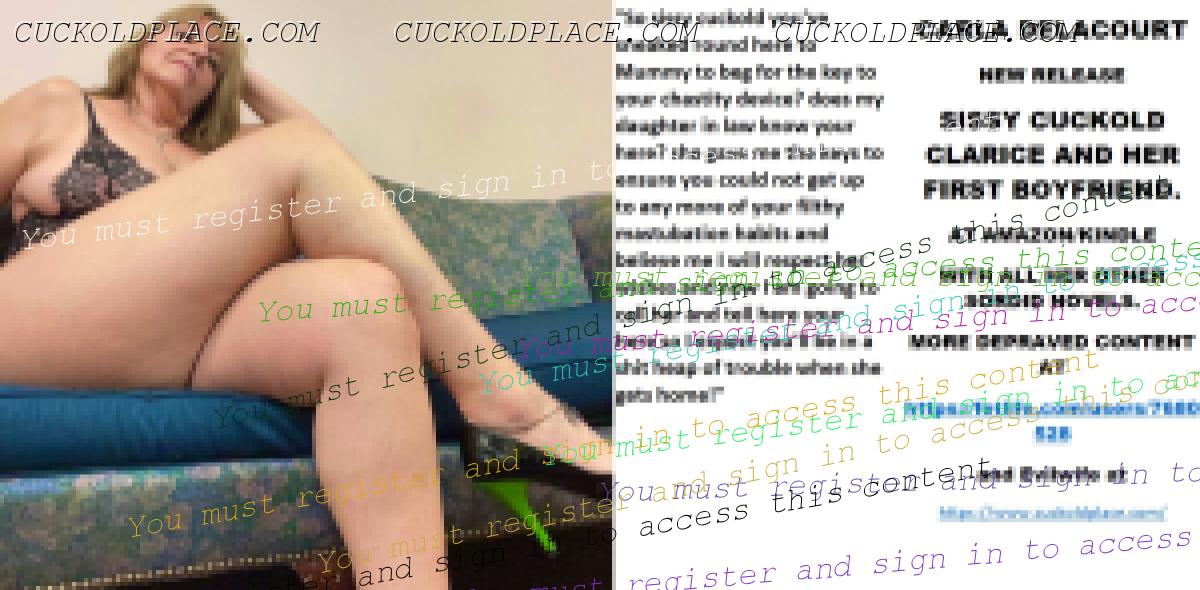 CARLA DELACOURT NEW RELEASE SISSY CUCKOLD CLARICE AND HER FIRST BOYFRIEND. AT AMAZON/KINDLE WITH ALL HER OTHER SORDID NOVELS. MORE DEPRAVED CONTENT AT The hyperlink is visible to registered members only!and Evilwife at https://www.cuckoldplace.com/SISSY CUCKOLD HISTORY 490. As a life long feminized sissy cuckold you do tend to ponder over all aspects of the life and one thing maturity has given my and probably you as well is the ability to analyse? For us feminized sissy cuckolds the understanding that if given the opportunity we will fiddle with ourselves at any time I am talking here about pre marriage, divorced status, in between female owners or widowed, not to mention when in marriage to a Cuckoldress that does not understand the absolute must of chastity and control. I recall times when single and divorced when my sissy clit almost dropped off with the amount of self ***** I was doing! there were moments when it was painful to touch my sissy clit because I had masturbated to much. There seems to be steps to rectify this by dedicated sissy cuckolds via chastity key control by Prostitutes, Dominatrixes and even asking the ex wife to hold the keys! something that all ex wives will gladly do I expect? I know mind are more than happy to do. It should become mandatory for Feminized sissy cuckolds to attain the place where anal sissygasms are the only route to relief? that is unless there is also anal chastity to consider and then the only hope for the sissy cuckold is to beg the keyholder to allow unlocking for a *********** selfish bout of anal stimulation either by toys or from a male ass fucking your sissy cuckold pussy!