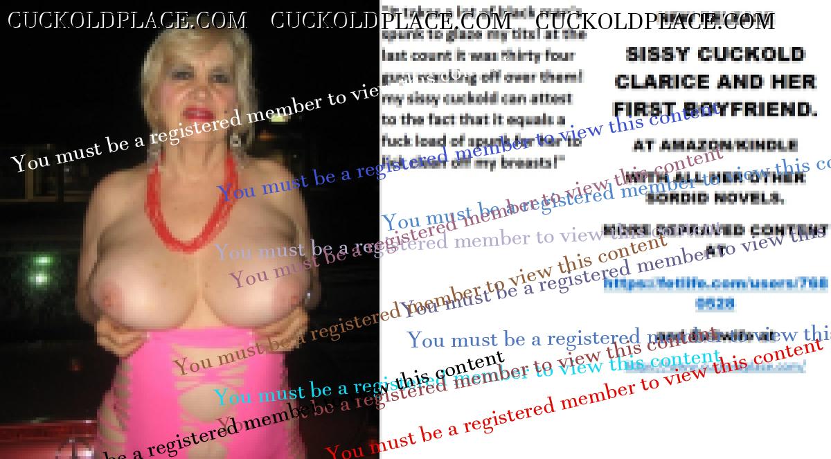 CARLA DELACOURT NEW RELEASE SISSY CUCKOLD CLARICE AND HER FIRST BOYFRIEND. AT AMAZON/KINDLE WITH ALL HER OTHER SORDID NOVELS. MORE DEPRAVED CONTENT AT The hyperlink is visible to registered members only!and Evilwife at https://www.cuckoldplace.com/SISSY CUCKOLD HISTORY 491. Lucy was a mature prostitute I served as a feminized sissy cuckold after my last cuckoldress wife dumped and divorced me and believe it or not she had never had one of our sort serving her before although she had done transvestites and one of her things was to watch gay sex. To say Lucy liked sex would be a massive understatement and some of her sexual fantasies were so extreme they even shocked me. Lucy was blond, fat and utterly sexy she looked like a cheap tart and with her Birmingham accent sounded like a street walker although she had never been on the batter on the streets always working from her home getting punters via the internet. Lucy had lots of punters and quite a few were regulars that she did bareback so her need for a feminized sissy cuckold was all to real so every time I was with her between my work shifts there was always sloppy well fucked spunky pussy and anus to clean up and as I licked her holes clean she would tell me what her clients had done to her that day. But with Lucy prostituting was not enough for her and she would take me to swingers clubs that she liked to go to and believe me all the men attending these clubs were in danger as soon as Lucy walked in! the craziest night was the evening Lucy did twenty nine guys and between each of them Lucy had me licking her clean and sucking clean the guys that had just fucked her it was amazing utterly humiliating and I was in a sissy cuckold frenzy as Lucy did not allow me any relief what so ever. Lucy took care of that a few days later with me on my stocking clad hands and knees getting fucked by a punter or hers that fancies having a go with a transvestite and as he fucked me Lucy gently wanked my little penis off and I came uncontrollably thanking her as my cuckoldress!