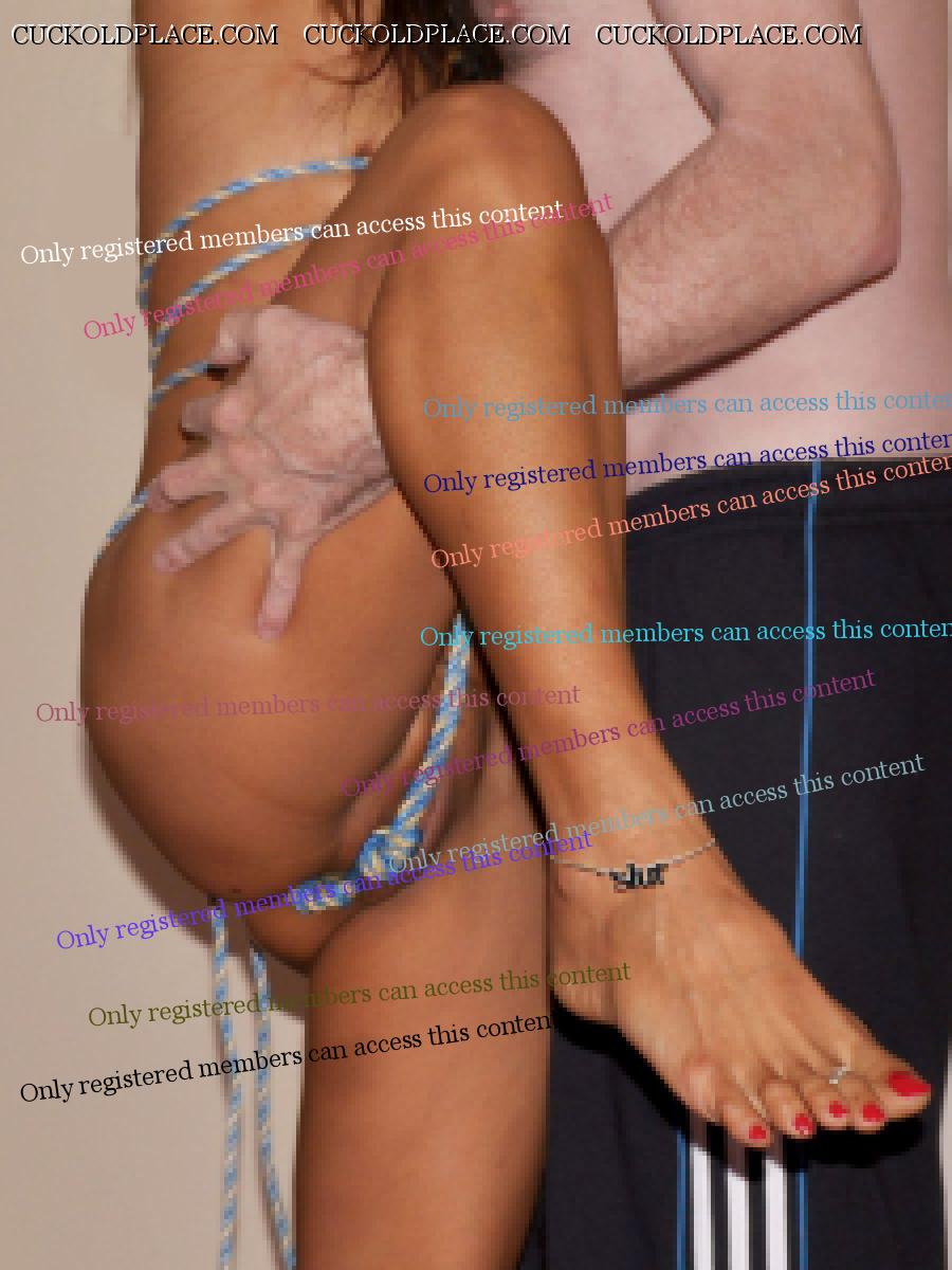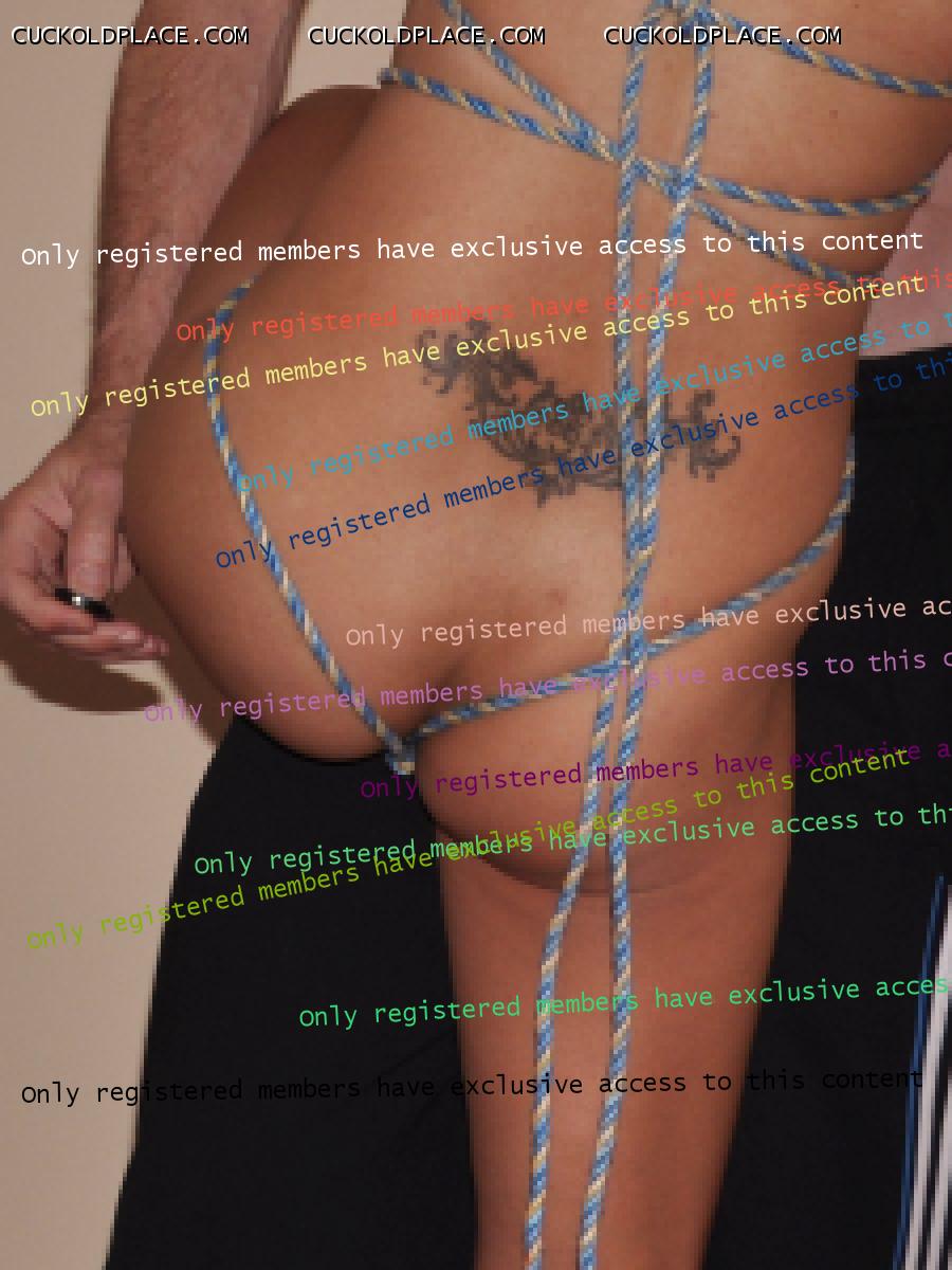 Every meeting we have sex. That is why she's here. Should friends call past she pulls on one of my t-shirts like a short dress on her. I don't let her cross her legs and at times she's parted them. I've lifted the t-shirt for some friends. In the roped shots below she had been tied and teased for some time. I finally untied her hands on the condition she's not to touch my ropes. The slut could barely stand to show her ankle chain because the ropes pulled into the gouge between her legs. It just made her hotter and needing to cum. She worked up a sweat rubbing her pussy knots against my leg. I teased her by pulling away when she go close. Finally I had to kiss her and let her orgasm rubbing against the top of my foot.. Note the padded bra hanging behind the door where it stayed until after I'd gone.  Proud of it.