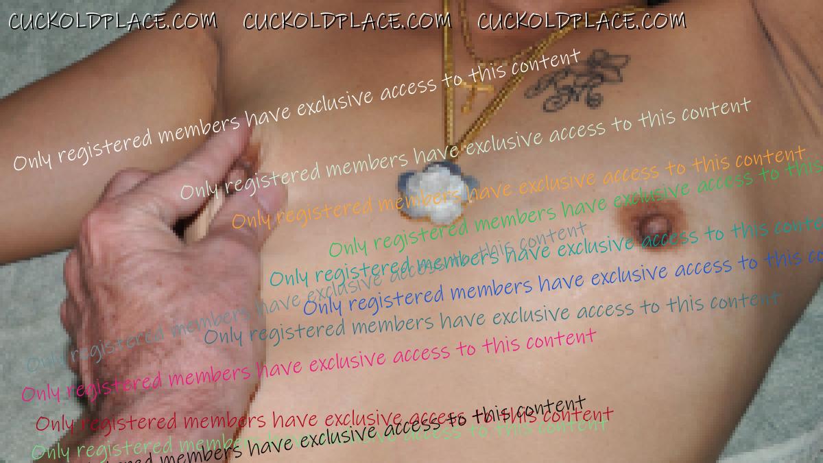 Hawaii 5 O: I'd love to be taking her next. You can tell by her body language that she loves it. I've always told her I want her to be a slut for me. After some initial reluctance she's relaxed and enjoying it. We routinely discuss her progress with one couple and she's sucked my cock on camera for them tp prove herself. A few times when she's been with me of a day or two I've told her not to rinse her pussy. I like her wet and leaking. At the end of the day she smells, tastes and feels the slut she is. Wife - nice and sloppy. I keep tina fully waxed to clearly reveal her pussy. Although she normally wears her hair down in the pics below I had her tie it up as I wanted clear shots of her little tits.