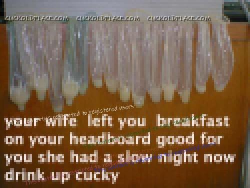 A couple of times, my wife would wait for her lover to leave and then go to the bathroom, retrieve the used condom and then lie on her back on the bed in front of me and pour its contents onto her bare pussy. Instant creampie without the lover around.