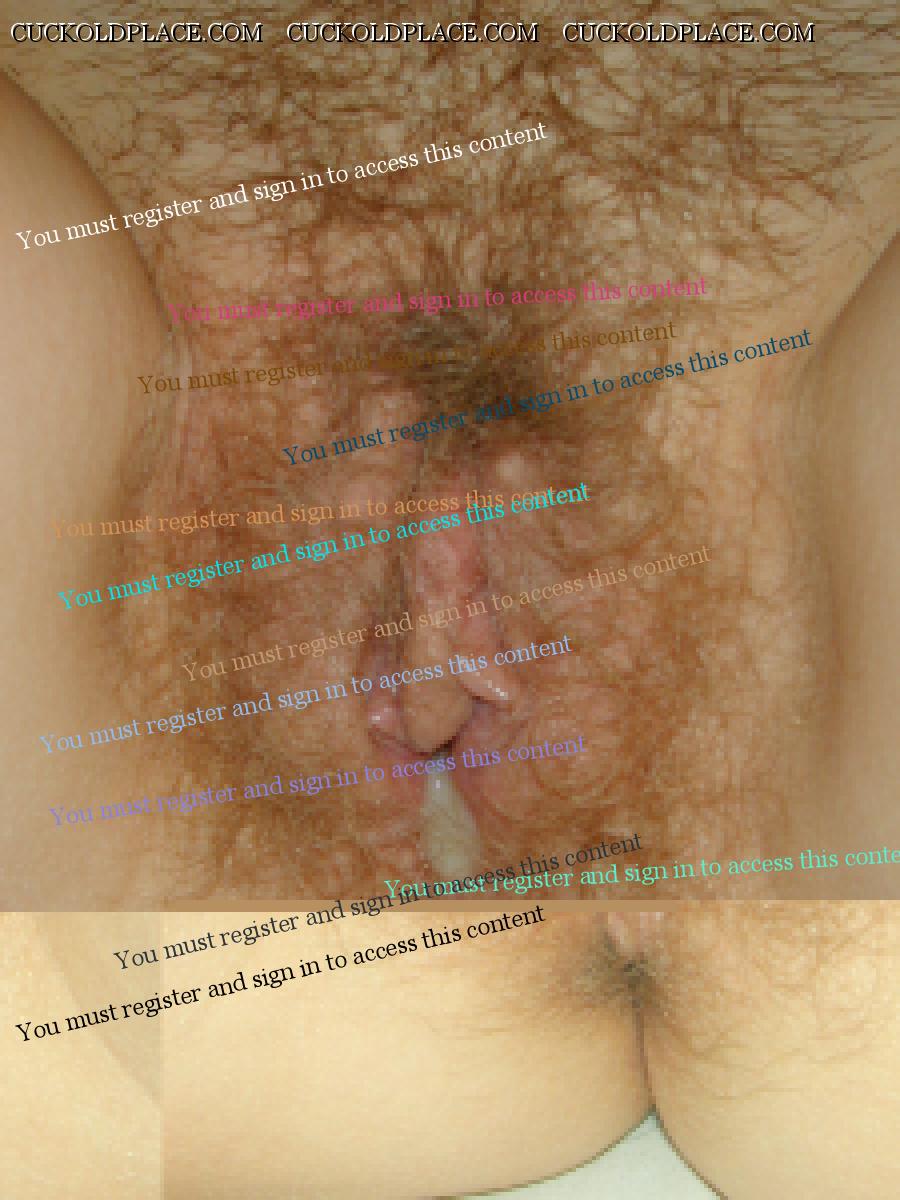 CuckoldPlace.com / Cuckold Creampie Cleanup / Hairy pussy of my wife and creampie |