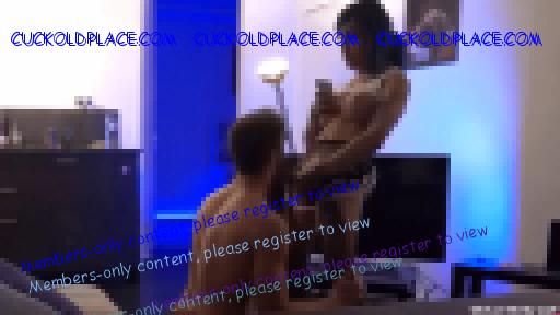 Shemale: Well done cuckold. Your girlfriend: Well done cuckold. Now eat her sperm. Shemale: Yeah, eat my sperm.