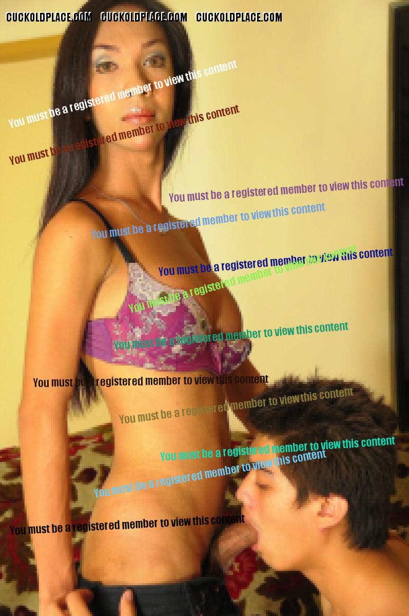 Shemale: Keep sucking my big cock so I can ejaculate a big load of gelatinous sperm on your face cuckold. Continued below.