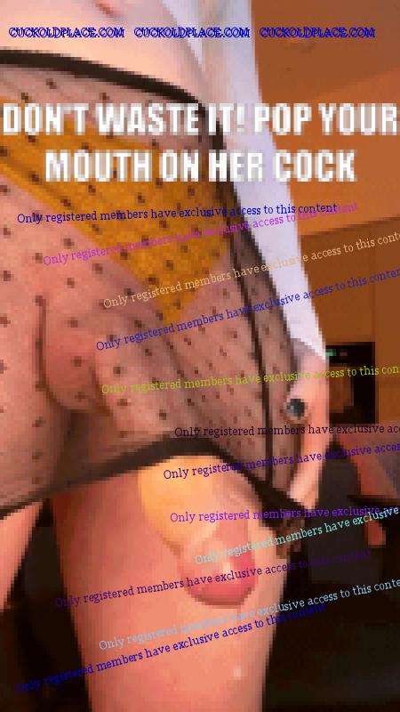 Shemale Miran: Oh, there you are. Now we can begin our fellatio lesson. First get on your knees, open your mouth, wrap your lips around my hard cock. Yes, that's it, very good, keep sucking. And lastly I'm going to ejaculate a big load of my gelatinous sperm that's filled with millions of sperm for you to eat. Your girlfriend: He's now a cock-sucking, sperm-eating cuckold!
