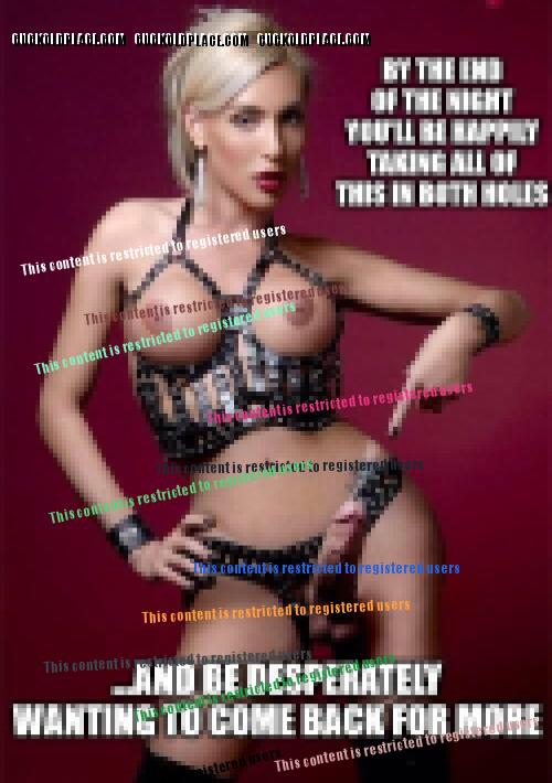 Your girlfriend: Honey why don't you sit on the shemale's big cock so she can sodomize your boi-pussy bareback and fill up your sissy ass with a huge wad of her shemale sperm. You: OK, I'm on it. Get sodomized by a shemale in your boi-pussy.
