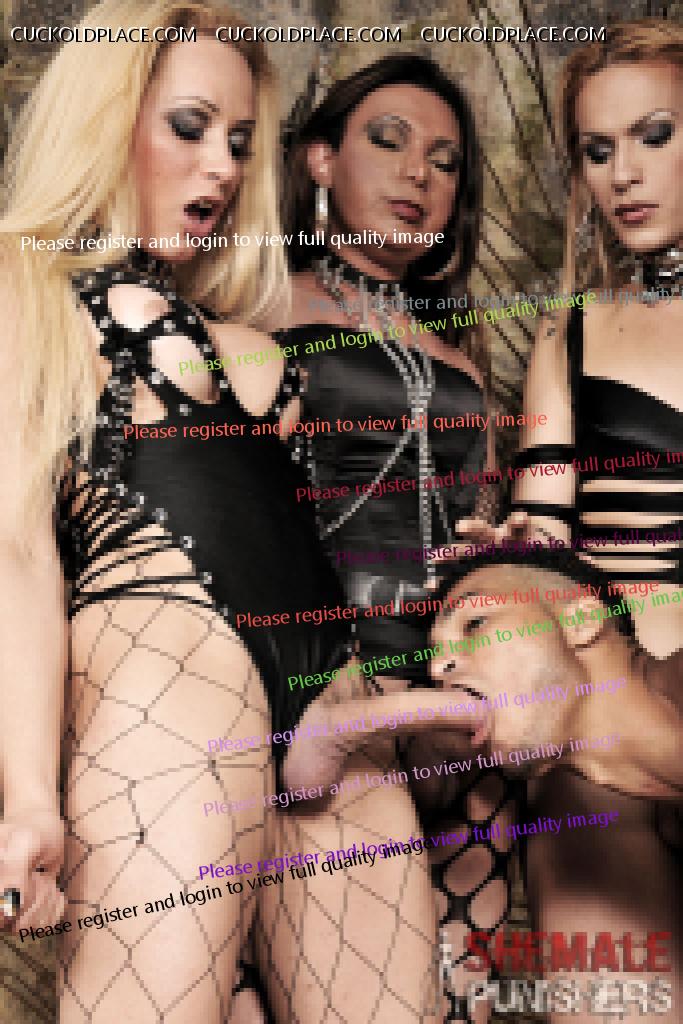 Shemale: You are a cock sucking cuckold who loves to eat my gelatinous sperm who has a small worthless penis. Girlfriend: You nailed it. The both laugh. Cuckold
