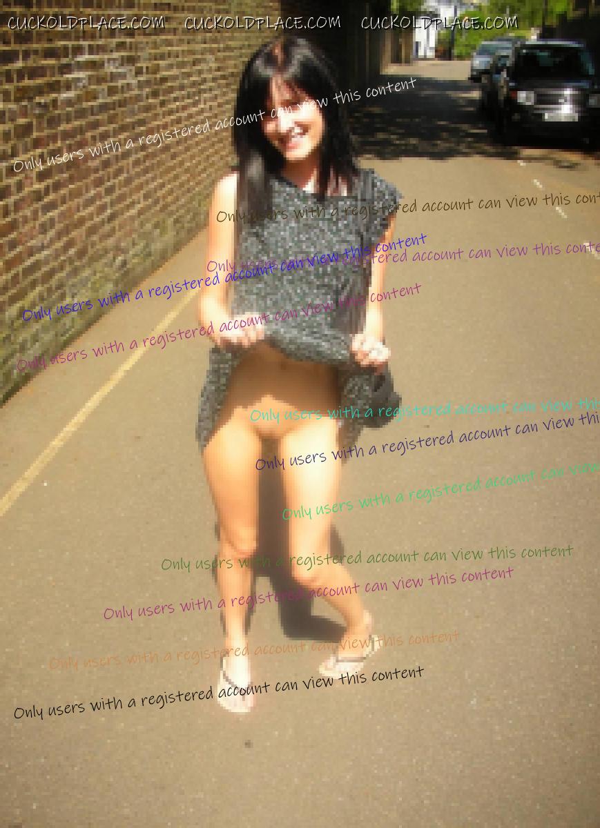 my gf and i were walking to the subway a few days ago, she was wearing a tight black skirt that comes dangerously close to showing her butt when she walked, black boots, and a loose white v neck t shirt without a bra. her nipples subtly visible through the fabric, her boobs bounced with her steps. i could see the men staring. at a red light on the corner 3 men stood outside a deli. one shouted 'i like those legs girl' another yelled 'spin around and show us what ya got baby' the third told her to come over and say hello. she winked at me and walked over. i stood and watched her flirt with them, and showing off her body. the first guy, tall, lean, and muscled with confidence and authority pulled a pen out of his pocket, reached out and grabbed her wrist to pull her closer. she giggled as he wrote his number on her arm. to top it off he dropped his pen and it rolled a few feet away, she eagerly chased after it and seductively bent over to pick it up. the three men and i all stared at her butt while her skirt hiked up and gave them a peek at red lace panties hugging her ass. she tossed the pen to her new friend and skipped over to me with a smirk on her face. gave me a playful smack on the butt and put her arm around me. i could here all three of the men laughing as we walked away. she asked me if i enjoyed her performance, since it was for me. i didnt have to answer. i had a tiny bulge in my pants covering my hard cock that proved it.  VERY similar to my gf