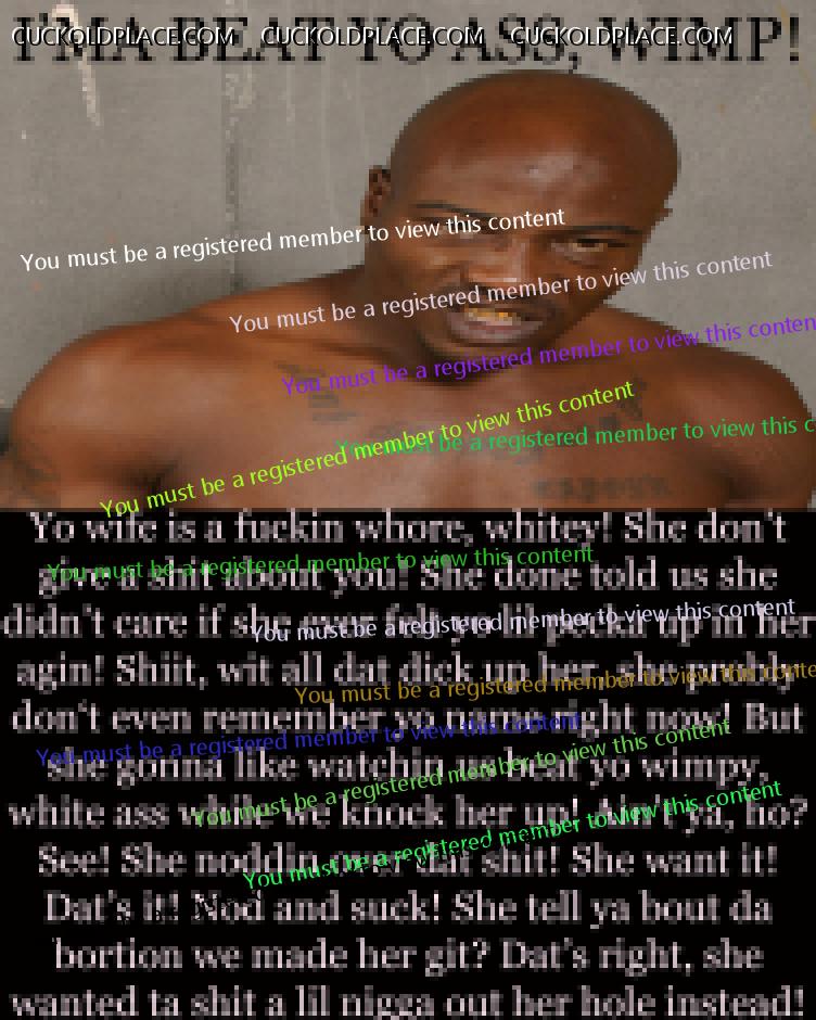 Oh my god Septiik , you are my dream woman , I love all your nasty converted pics and stories , I saw a rap video once which said " I'm gonna watch you leak bitch as I beat your honkie husband " I absolutely love the idea of total humilation .