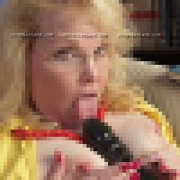 Fat blonde mature teasing and playing a dildo |