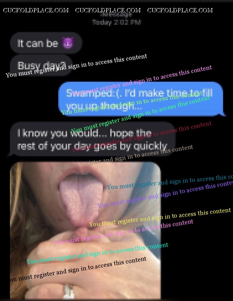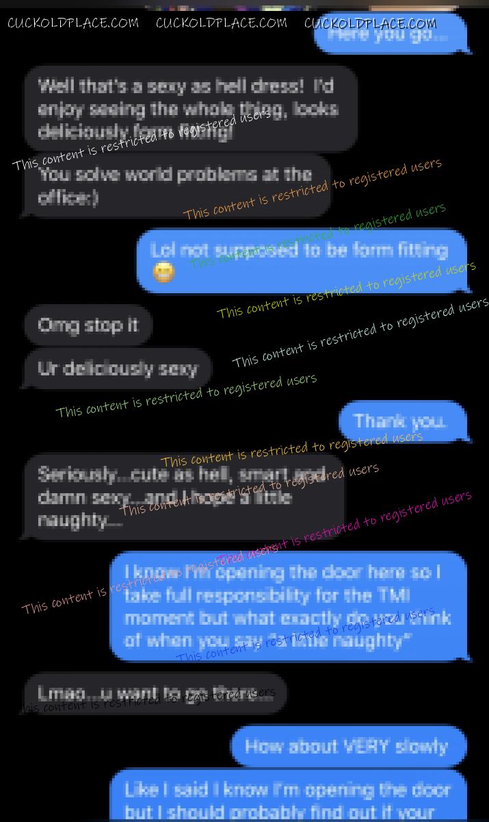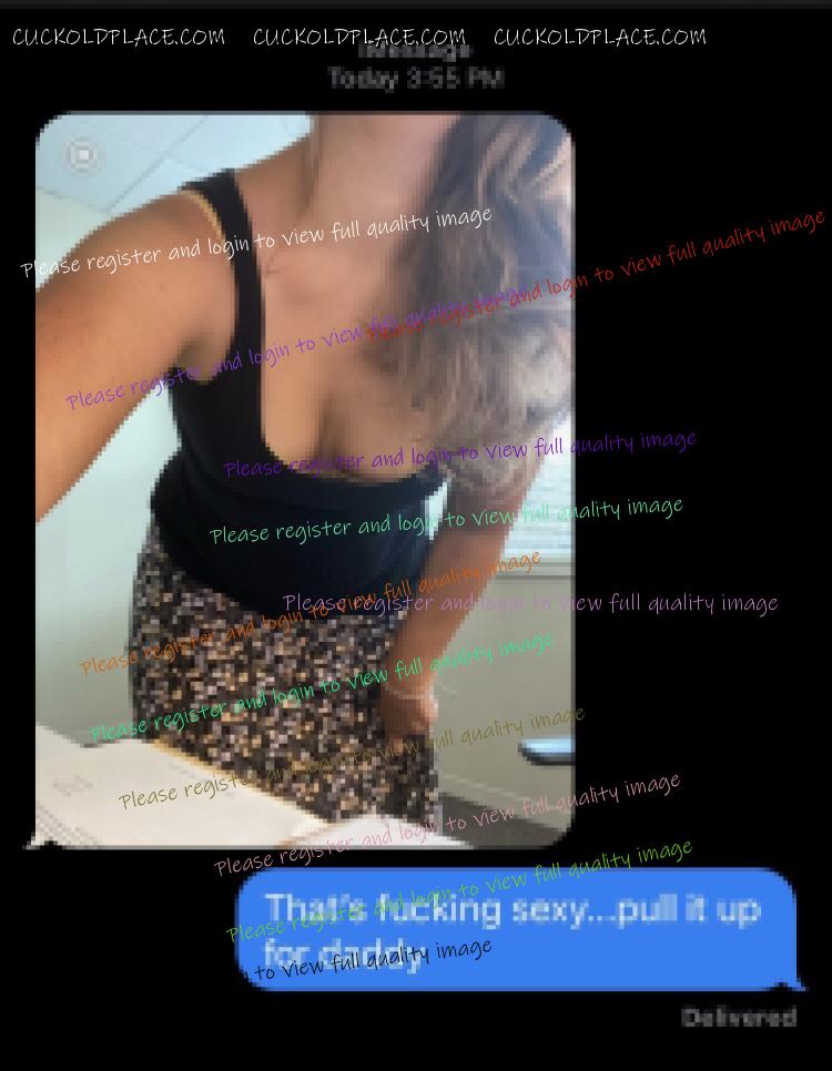 This was their conversation yesterday while she was in her office at work, Monday 11/9, along with two pictures I took of her getting ready in the morning as well as her panties when she got home that evening. Remember, she has no lock on her office door and there is a chance anyone can walk in on her while she has her body so erotically displayed! They had discussed Friday the possibility of getting together tonight. Again, she had asked last night what my schedule was like this week no doubt making sure what her availability would be whether for tonight or some other time this week. I do believe she is desperate for him again! What do you think? Would love to see you guys shooting your loads or see what my wife and these posts do to you otherwise!