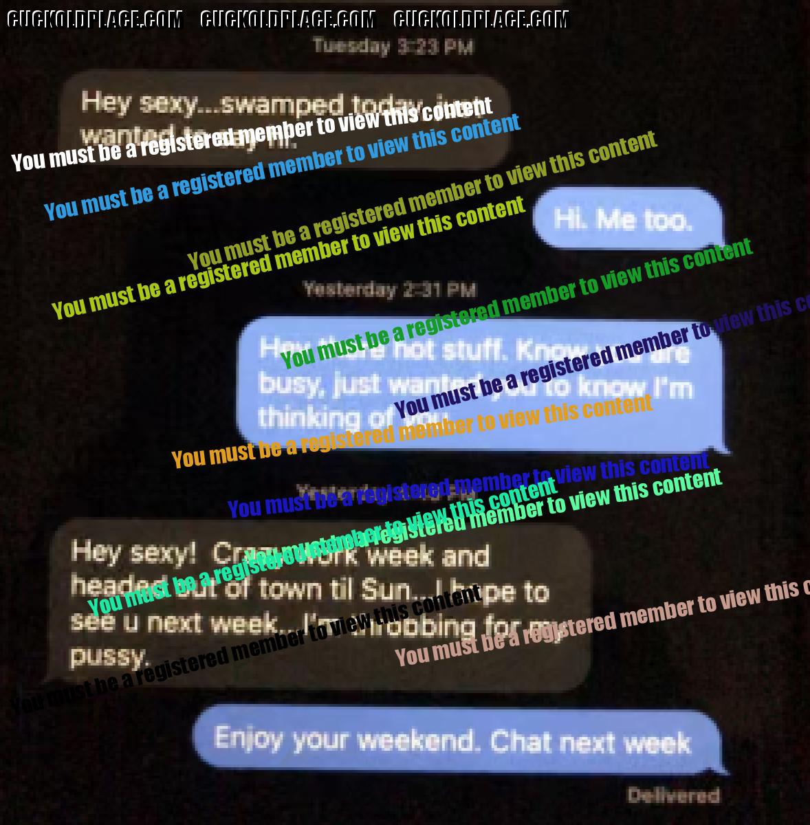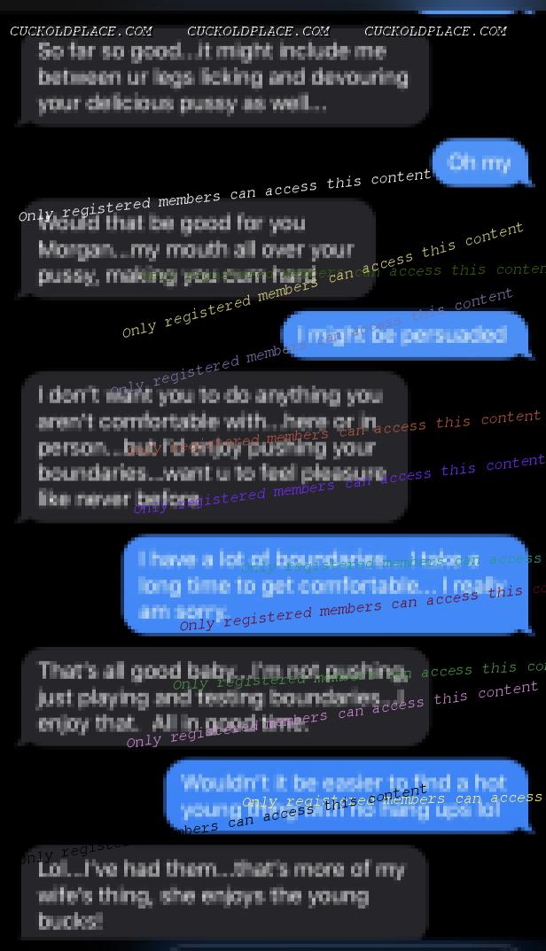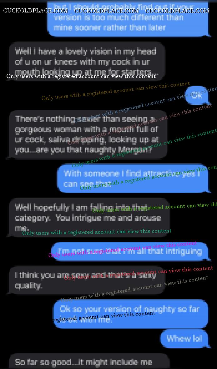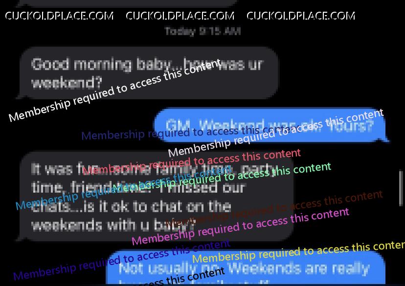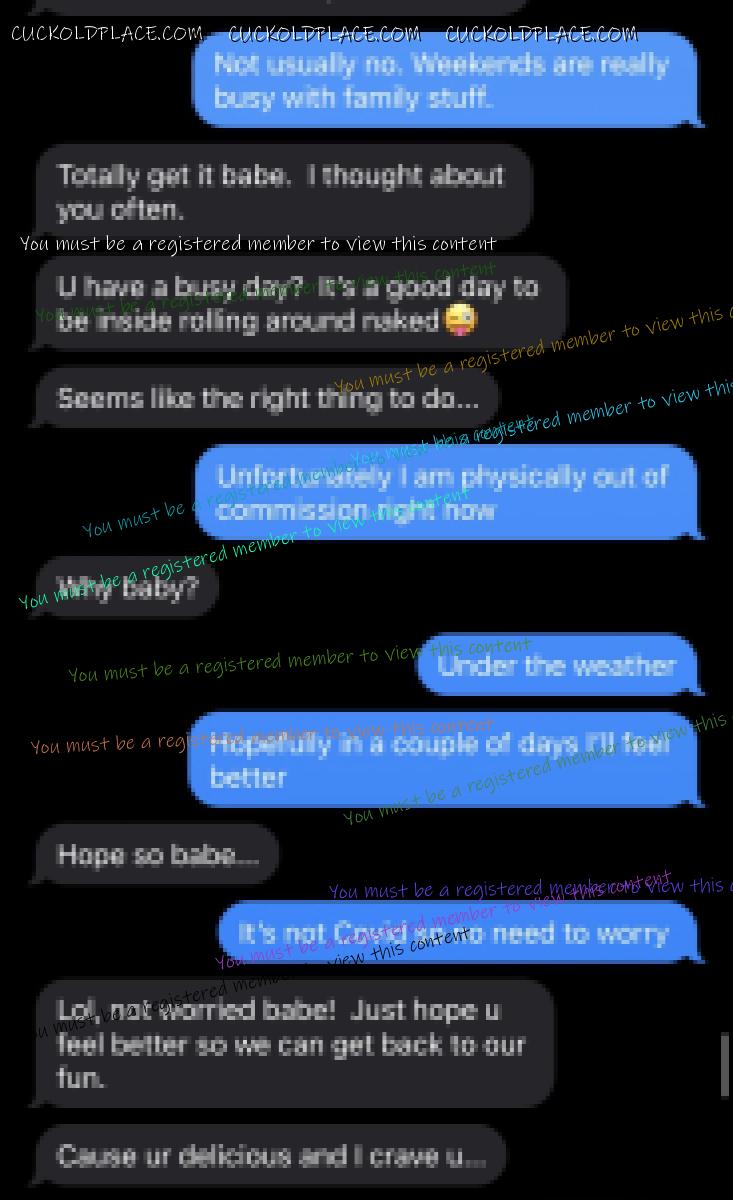 Updated from this week: Even though they have both been very busy since their last involved conversation this past Monday I still find even the seemingly innocuous and brief "hellos" incredibly hot, especially while taken within context. For example, their brief conversation yesterday is, I believe, the first that my wife reached out to him before he reached out to her. Along with the context of her brief statement he is clearly now on her mind regularly and she is now beginning to need daily contact with him even if it means her reaching out to him first. This lets me know that he is becoming part of her regular and daily mindful thoughts and bodily needs. Particularly, given the fact that her and I had not spoke for a few hours before or after this, along with the fact that she reached out to him and not me, means that HE was on her mind when I was not. I find it increasingly alluring that she is finding in HIM what she cannot get from ME. In addition, immediately when she arrived home from work last night she asked me what our plans were for next week. She quickly followed it up with that because we were having so much trouble planning a certain event one evening next week that she simply wanted to know what else we had planned for her own curiosity. I had a suspicion and knew quickly that her asking likely had an ulterior motive even though this may have been one too; it was likely to ensure that she was aware of her own availability. Once I saw this brief conversation this morning between them from yesterday, and again within the context of her question for me last night, I knew immediately the real reason for her need to know of our plans next week; she knows that he wants HIS pussy next week and she wants to ensure that he can get it! So, even these small, brief, and seemingly innocuous conversations seem to find a well footed spot in my arousal when mixed with the context of her other conversations, questions, and actions taken concurrently or contemporaneously. P.S. She also showed me some new thongs from one of her favorite online stores yesterday morning before leaving for work along with some new PJs. I knew she was hinting that she wanted them but likely would not buy them herself. So, as a good husband I went ahead and bought 6 pairs of thongs that I know she will like; of course, knowing VERY well that she wants these and will be wearing them primarily for the benefit of her new boyfriend. She now has at least one pair for every day of the work week so that she has her pussy properly dressed for him when he calls on her. Yes, I bought her a pair of the PJs as well.