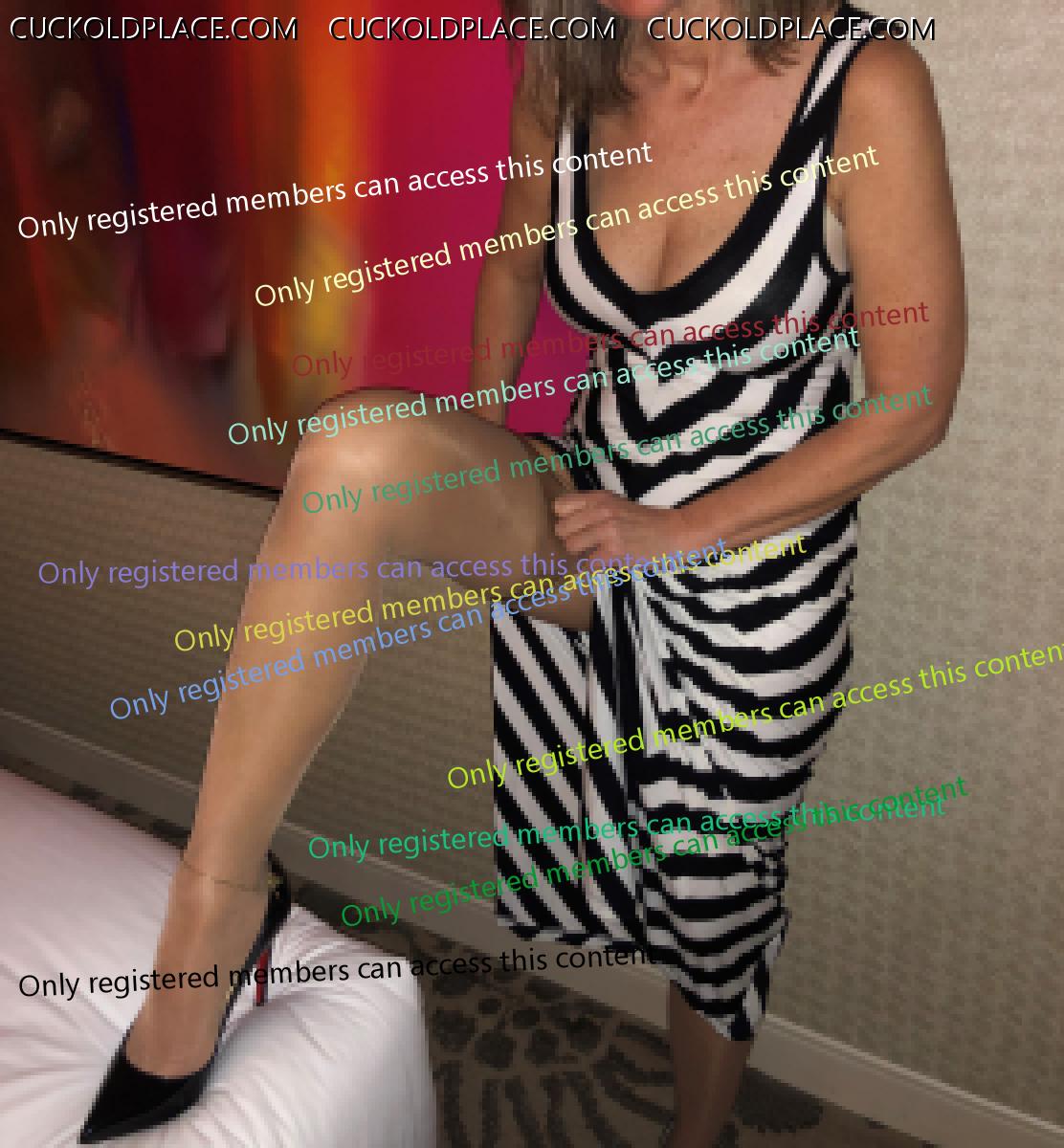 Very nice indeed. Of course I and other bulls would love a chance to have her on the end of our cocks with you waiting on the side to clean us both up. Nice touch with the ankle chain too. A clear signal that she's on the hunt and available for cock....sweet!